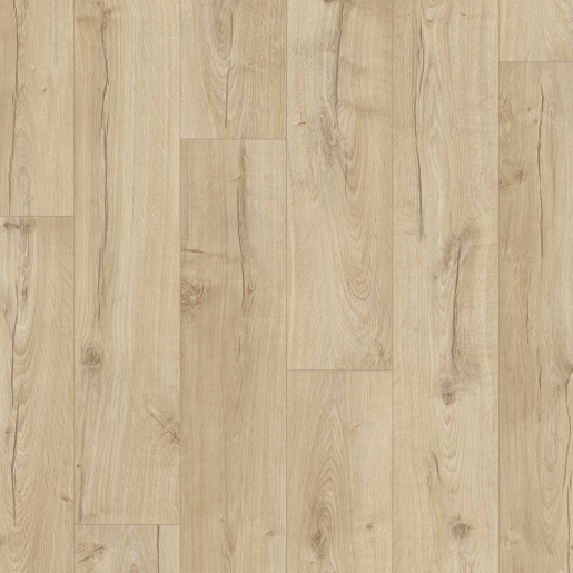 The Classic Oak Beige flooring from the Quickstep Impressive range is a medium oak board, which can bring a warm and cosy feel to any room in your home. Perfect for kitchens and bathrooms, where spillage may occur, the floor is also bevelled edged, which emphasises the natural look of the board. It’s quick and easy to fit with the Quickstep Uniclic system and includes a 25-year domestic warranty.